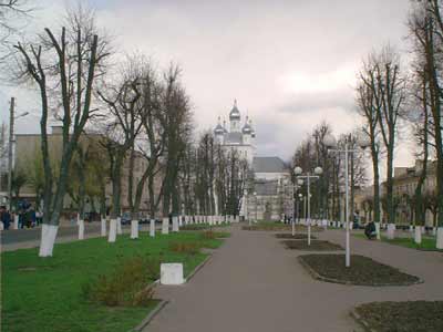 Центральный - по географическому положению и значимости для города, а название, вполне возможно, он носит и другое. На заднем плане Спасо-Преображенский собор