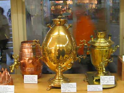 Самоваров в ней так много, что вмещаются они на полки с превеликим трудом...
