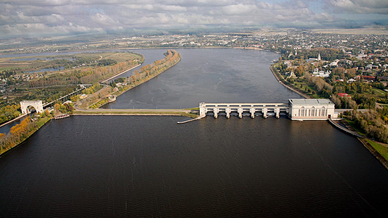 Шлюз и водосбросная плотина Рыбинской ГЭС
